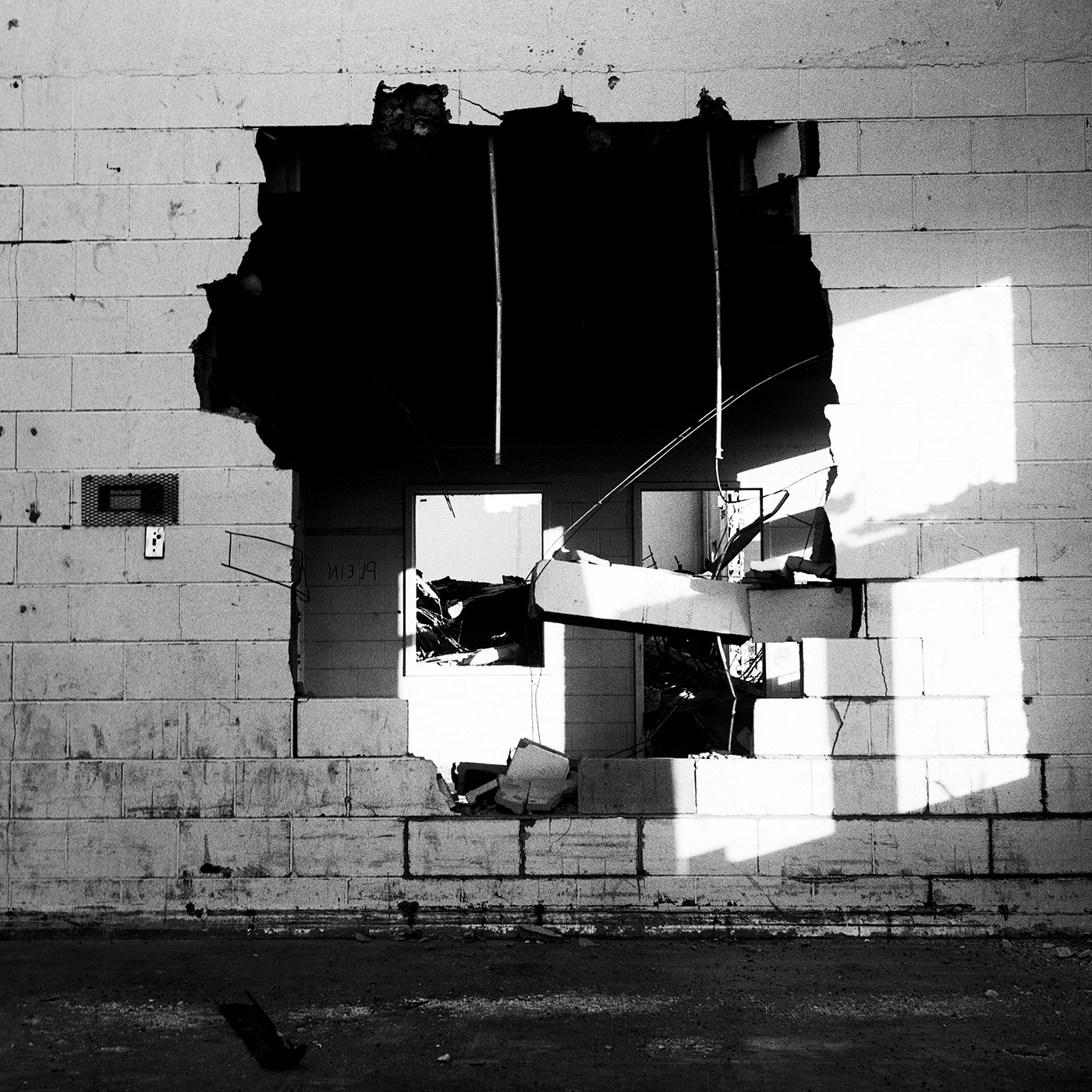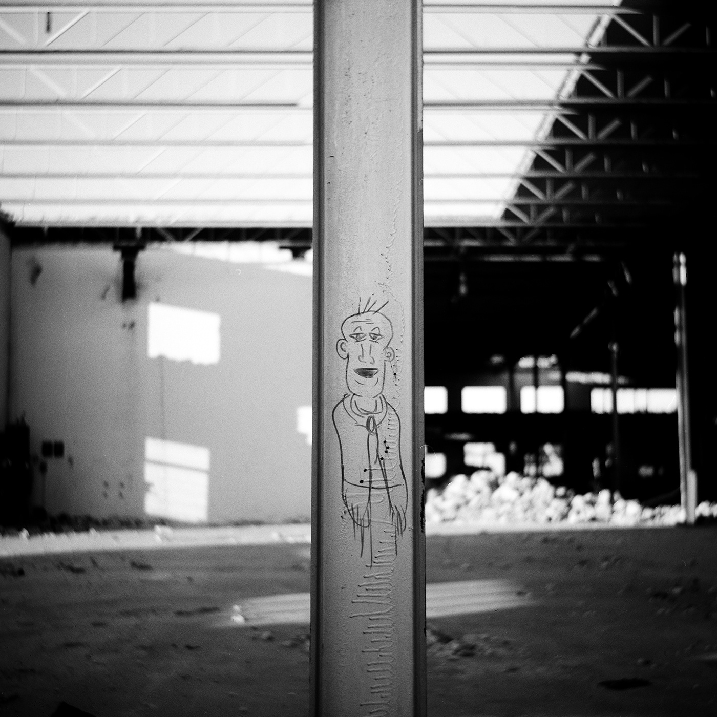 Des rouleaux de films moyen format et 35mm. Une vieille caméra russe et le nikon que mon père avait. Un building qui se fait dépecer comme une vieille carcasse. Voilà.